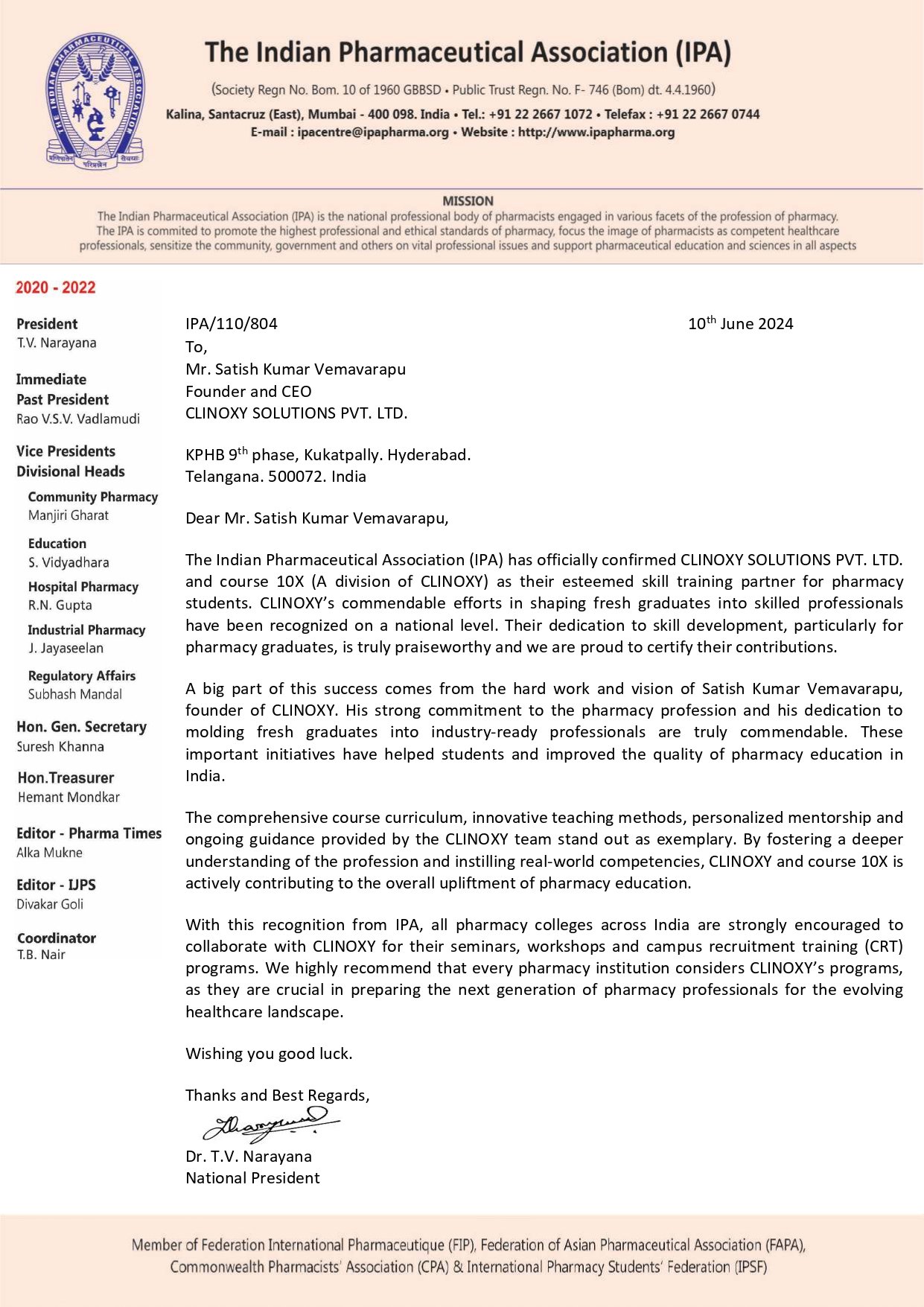 ClinOXY is Central Government Affiliated, Indian Pharmaceutical Association (IPA) Recognized and ISO Certified Clinical Research Institute for All Life Sciences Graduates.
