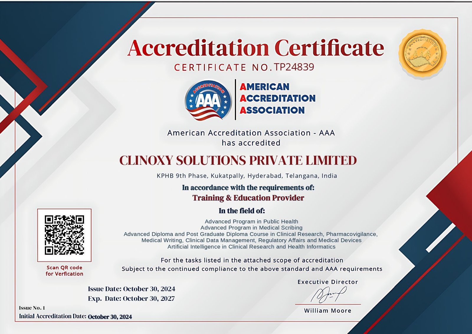 ClinOXY is First Clinical Research Organization got Affiliated from American Accreditation Association. AAA and Indian Pharmaceutical Association. IPA | Internationally Affiliated | Get International Valid Course Completion Certificate