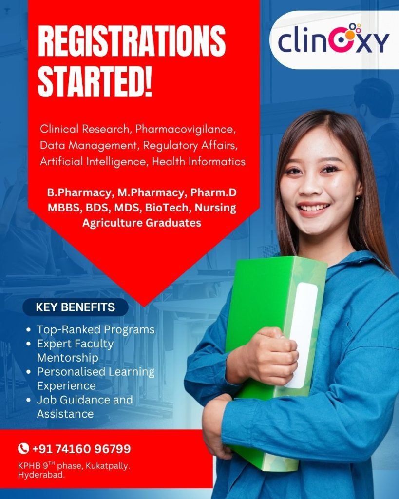 ClinOXY is Internationally Affiliated by the American Accreditation Association (AAA), Recognized by the Indian Pharmaceutical Association (IPA), and ISO Certified Clinical Research Academy. It stands among the Best Clinical Research Training Institute and Best Pharmacovigilance Training Institute in India. With expert mentors, practical-based learning, and a globally aligned curriculum, ClinOXY prepares life science graduates to become industry-ready professionals.